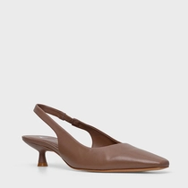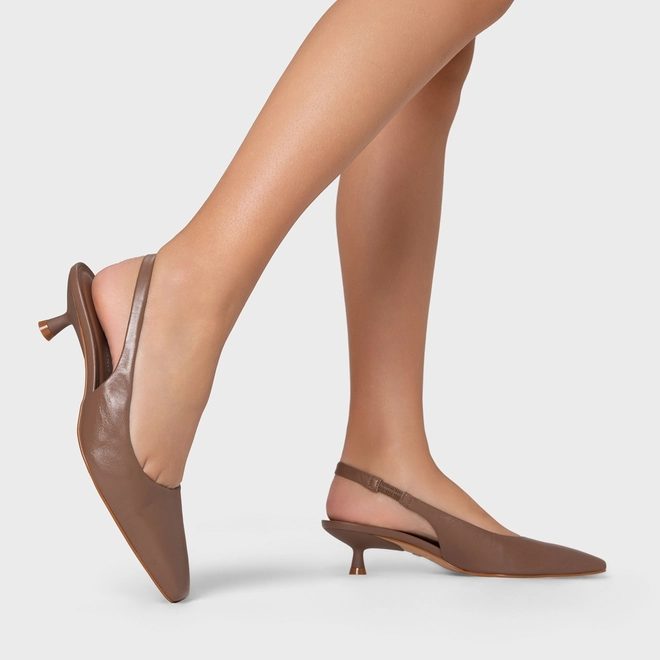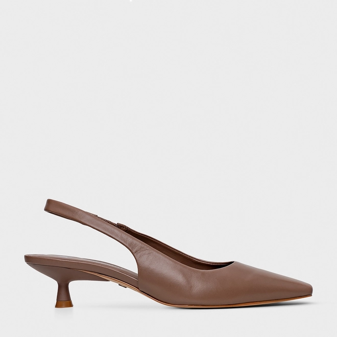 Scarpin Slingback Timeless Salto Fino Couro Marrom Mocha