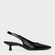 Scarpin slingback de couro com bico alongado e salto estilo kitten heel. Parte traseira totalmente aberta com tira de elástico para facilitar o calce.