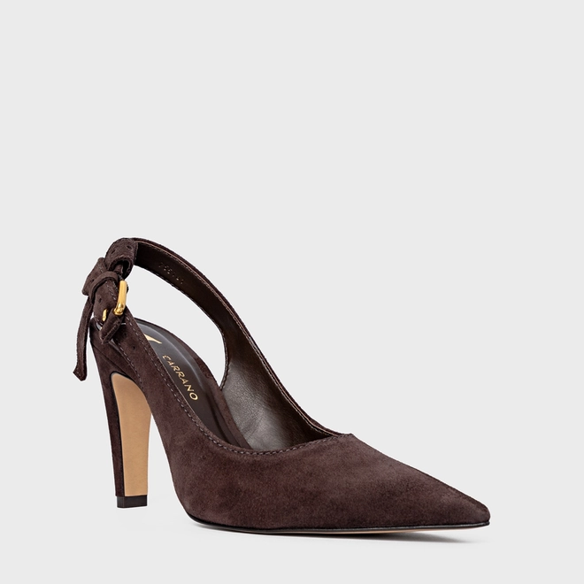 Scarpin Slingback Timeless Salto Fino Couro Suede Marrom Ganache