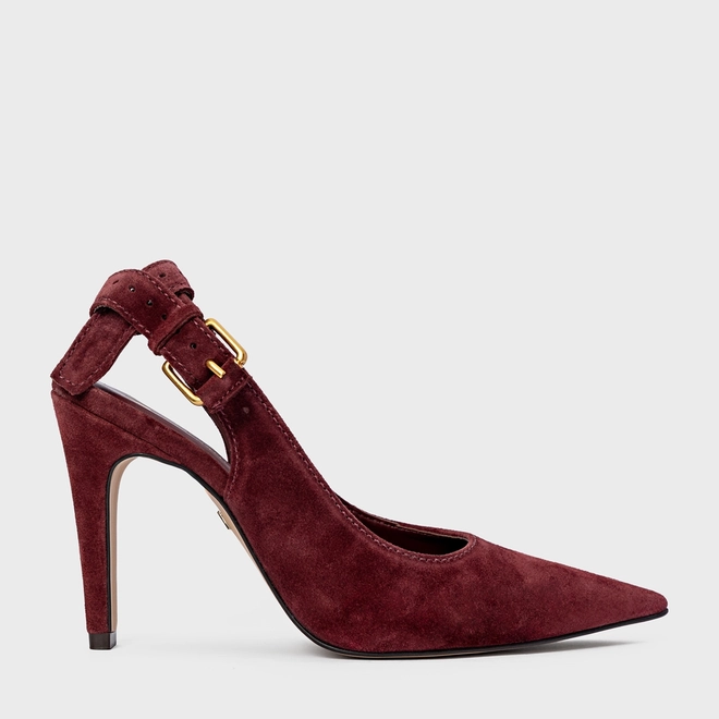 Scarpin Slingback Timeless Salto Fino Couro Suede Vinho Mahogany