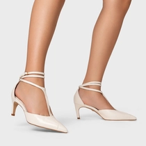 Scarpin Slingback Tiras Front Salto Fino Couro Off White Milk
