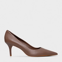 Scarpin Timeless Salto Fino Couro Marrom Mocha