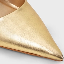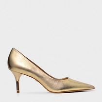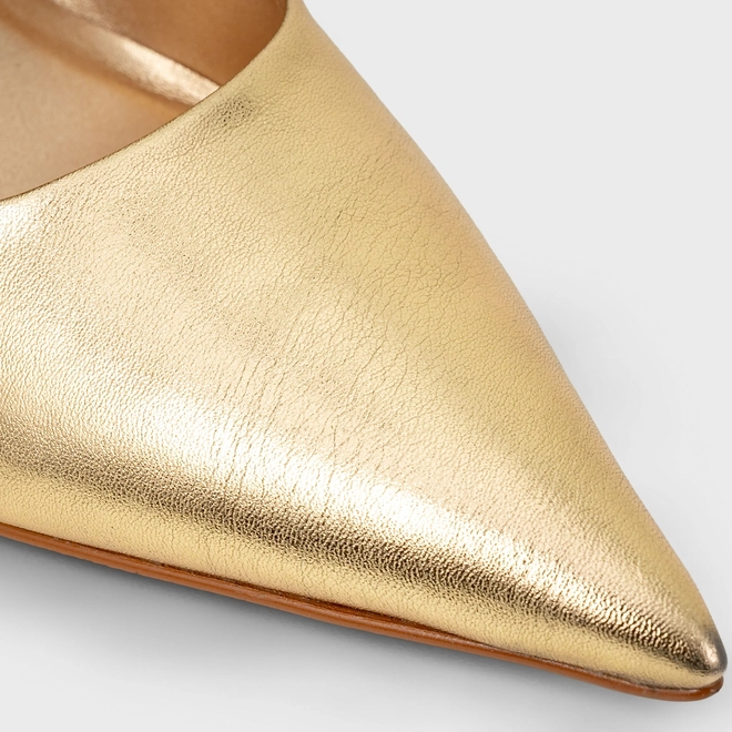 Scarpin Timeless Salto Fino Couro Metalizado Dourado