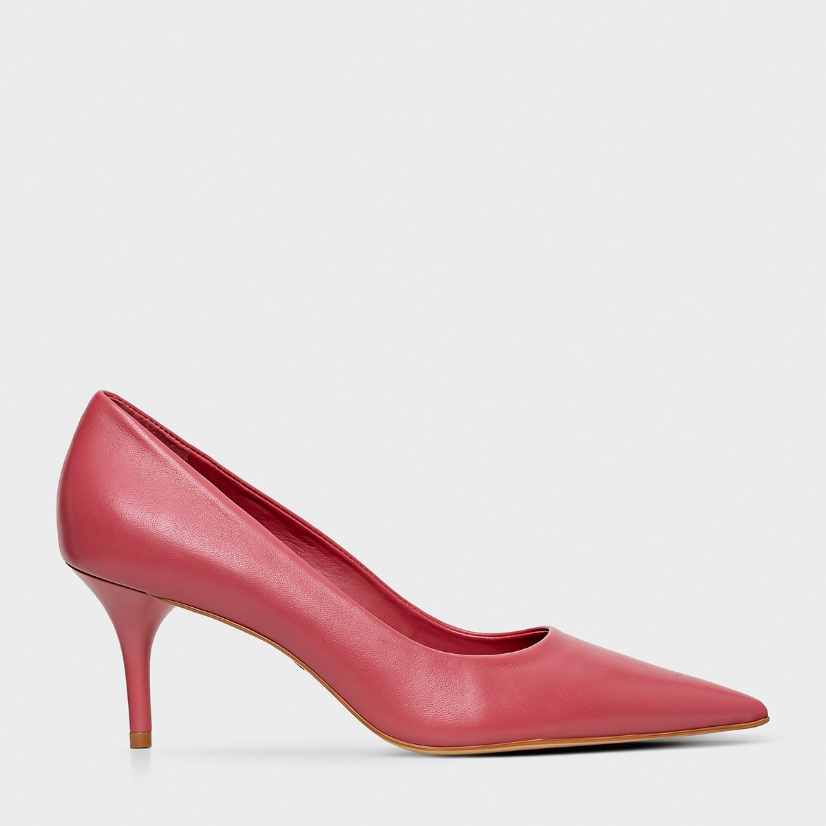 Scarpin Timeless Salto Fino Couro Rosa Berry