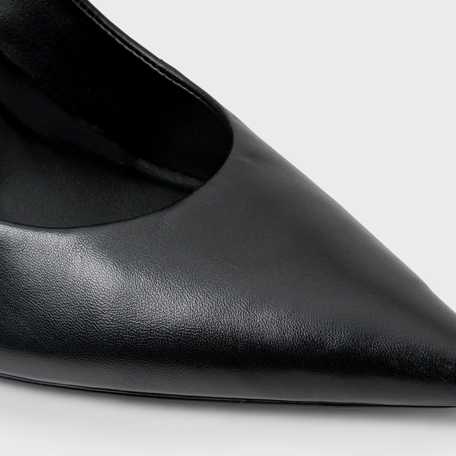 Scarpin de couro. O modelo possui salto estilo pino alto e bico fino. Acompanha a anatomia do pé, prezando pelo conforto e estabilidade na hora do calce.