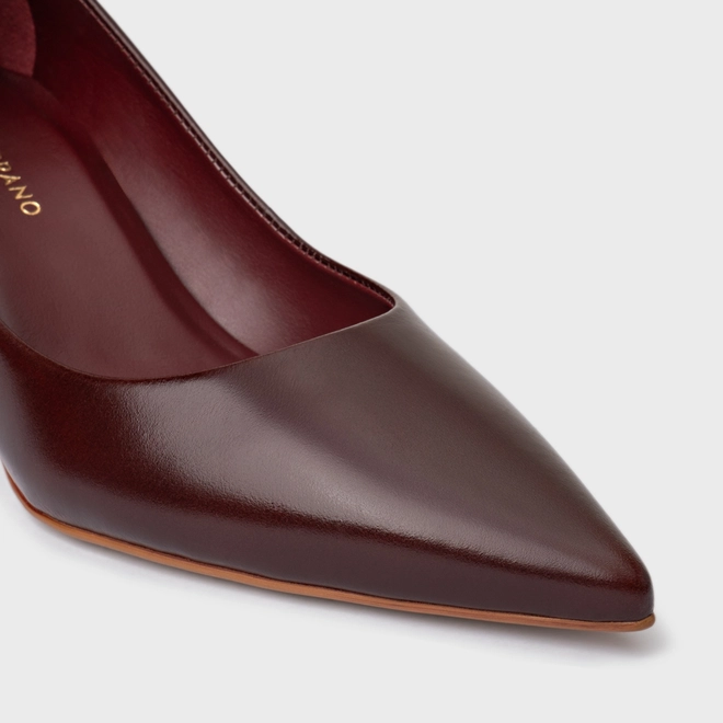 Scarpin Valentina Salto Fino Couro Vinho Dark Mahogany