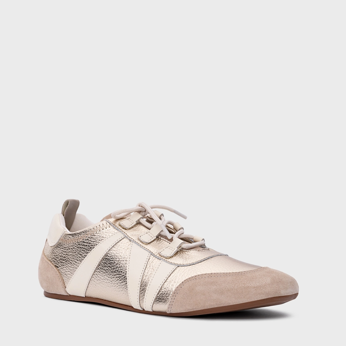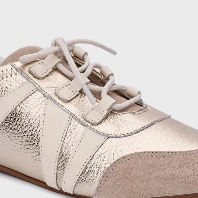 Tênis Details Couro Metalizado Champagne