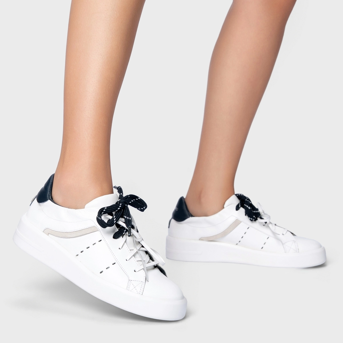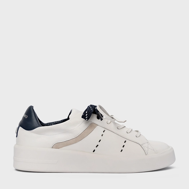 Tênis Detalhe Amarração Flatform Couro Branco e Navy