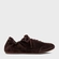 Tênis em couro suede de bico arredondado com cabedal liso. Possui fechamento por cadarço e solado baixo.