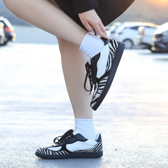 Tênis Textures Couro Pelo Animal Print Branco e Preto